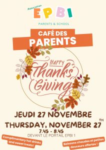 L’association EPBI Parents & School organise la seconde édition de son Café des parents le jeudi 27 novembre 2025 pour célébrer Thanksgiving!